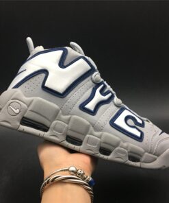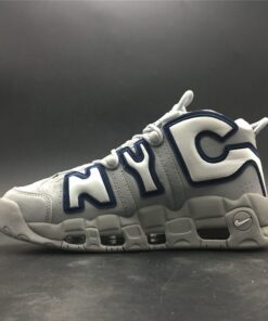 This NYC-themed Nike Uptempo comes dressed in a Wolf Grey, Midnight Navy, and White color scheme. An oversized “NYC” on the sides in White outlined in Navy replacing the traditional “AIR” branding.