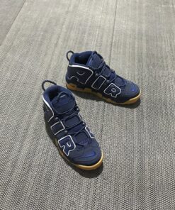 Dressed in an Obsidian, White and Gum Light Brown color scheme. This Nike Uptempo features a full leather upper in Obsidian Blue with White trim around the “AIR” lettering. Giving the shoe its stylish look is its Gum rubber outsole.