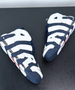 The shoe comes dressed in a patriotic mix of Red, White and Blue which will look like the original release that took place back in 1996 and retro 2012. It features a full Midnight Navy upper with the word ‘AIR’ across the sides. White and Gold are seen on the number 8 located on the heel of each shoe, which was a nod to Pippen’s Olympic number. Hints of red are seen on the swoosh logo on the tongue and bottom of each shoe as well. Even though this is not a signature shoe for Pippen, his name and the silhouette have been synonymous for the 20 year history of the shoe.