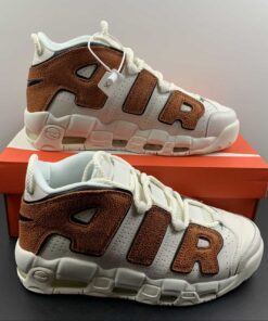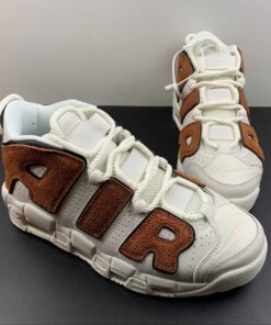 This offering of the Nike Air More Uptempo features a Sail perforated leather upper with mesh tongues. Basketball-textured “AIR” lettering on the sides and heels with Black Swooshes in the rear atop a Sail rubber sole completes the design.