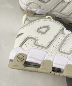 Starting the year fresh, the pair is effectively a blank slate color-wise. An off-white is applied to both the bubble letters as well as the base underneath, while the accents adjacent — such as the text’s backing, the embroidered/jewel Swoosh, and the lining — opt for a slightly darker grey. And though the midsole may complement the lighter of the two shades, its bottom is reminiscent of vintage offerings thanks to its yellowed finish.