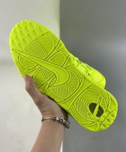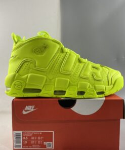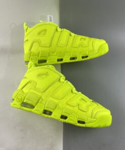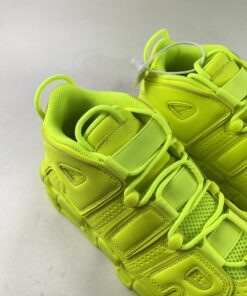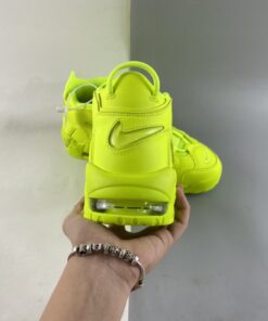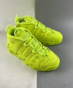 Loud in its choice of palette, the pair is fully clad in the above-mentioned neon. The greens wash over the big bubble lettering as it does the leather base; even the adjacent fixtures follow suit, though the mesh tongue and laces appear just a bit lighter due to their material. Neutrals make seldom appearances elsewhere, as the sockliner logo dresses up in black and the Air Units in a see-through finish.