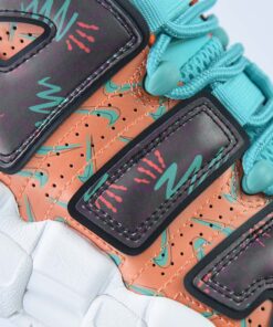 This special edition release features the classic 1996 model blasted with colors from that decade such as bright orange, teal, and bordeaux purple, all arranged in a manner that should inspire you to whip out the Zubaz pants. In addition to the mis-matched “What The” style colorway, Nike adds those familiar scribble marks on the upper, reminiscent of those outdated school yearbook photos and/or paper cups.