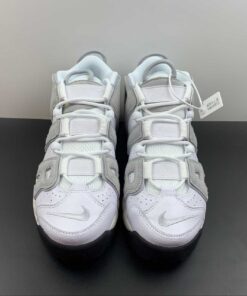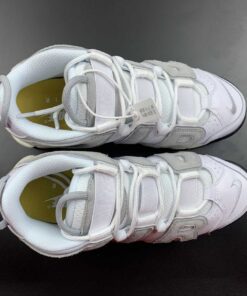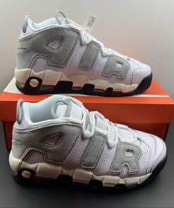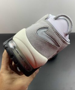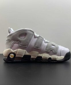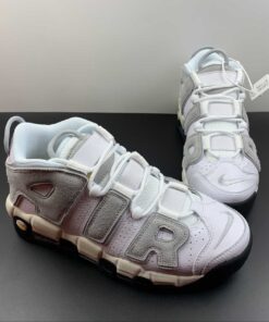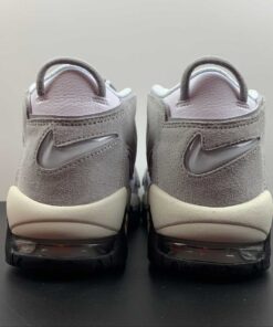 The eye-catching details on this Air More Uptempo are the hairy grey suede oversized “AIR” branding on both sides of the shoe. A lighter shade of grey tumbled leather covers the rest of the upper. The lacing system is pure white, matching the mesh tongue. An embroidered grey mini Swoosh can be found on the toe box while Nike Air branding in white stands out against a golden brown insole. A Sail-coloured midsole with exposed Air units and a black rubber outsole finishes off the design of this sneaker.