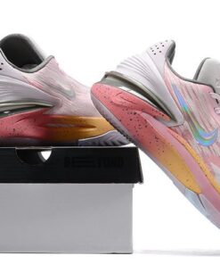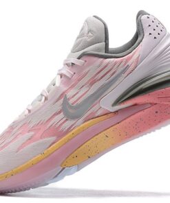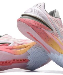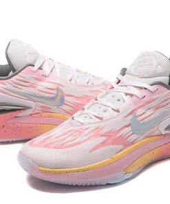 Before embarking upon its mainstay embellishments, a centralized wash of white cascades over the tongue construction AND heel counter while a complimentary grey fills the sock liner and presiding heel clip for a monochromatic introduction. Accented by dipping its laces in a soft pink association, the paint-brushed base layer explores a much more vibrant tincture across its upper. Elsewhere, a myriad of gradients takes over underfoot, embarking upon a golden yellow to hot pink finish throughout the sole unit whereas luminous, reflective Swooshes bring a shimmering close to the summer-ready silhouette.