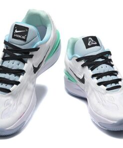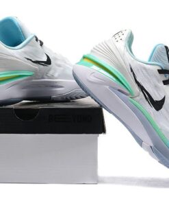 Unlike previous GT Cut 2s, this one comes in a clean white mesh construction and replaces the customary 3D Swoosh with a printed-on one for a more seamless appearance. The soft suede tongue is decorated with an ice blue paint job, and the lime green sockliner as well as heel counter provide even more contrast.