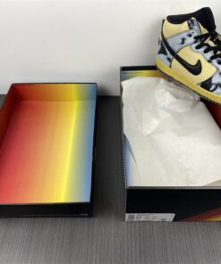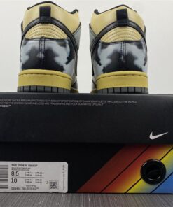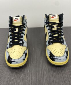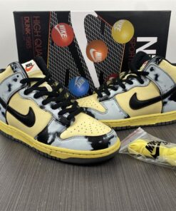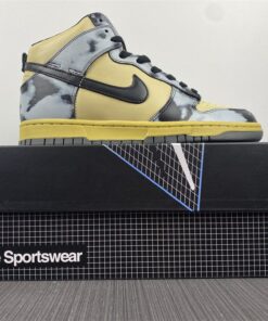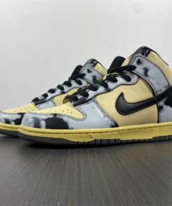 Featuring vintage vibes, this Nike Dunk High comes with a Pale Yellow across the leather base, while Black acid wash adorns the overlays. Next, Black appears on the leather Swoosh logos, heel pull tab, laces, and liner. Finishing the look is an aged midsole and a Grey rubber outsole.