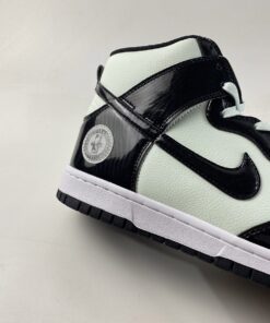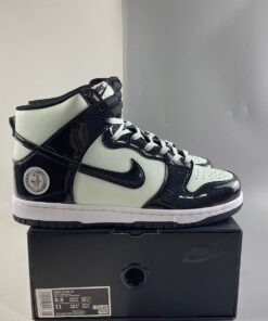 Dressed in a Barely Green, Black, and White color scheme. This “All-Star” edition of the Nike Dunk High features a Light Mint Green leather base with Black patent leather overlays around the heel, ankle, forefoot, toe, and Nike Swoosh logo. A set of Mint Green laces atop a White midsole and Black rubber outsole with the NBA logo emblemed on the heel displaying the event’s location completes the design.