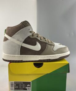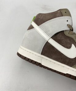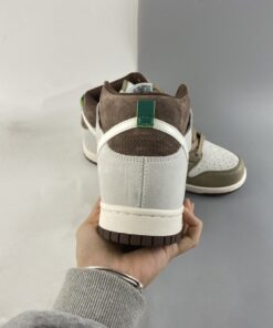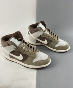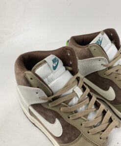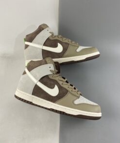 Dressed in a Sail, Khaki, and Light Chocolate color scheme. This Nike Dunk High comes constructed in a mix of suede and leather in a mix of Sail and Brown hues. Pops of Green on the tongue and heel tab adds to the outdoor vibe completed with a Sail midsole and Chocolate Brown rubber outsoles.