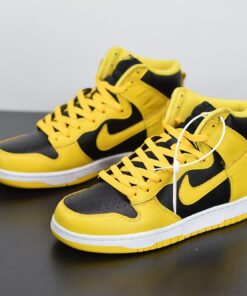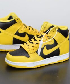 Featuring a Black and Varsity Maize color combination. Although images of the 2020 version has yet to leak, they will resemble the original release. You can expect this Nike Dunk High to feature Black leather across the base while Yellow tumbled leather is applied to the overlays. Finishing the look is Yellow on the rubber outsole.