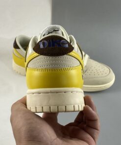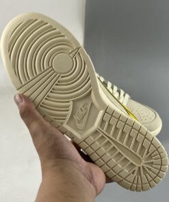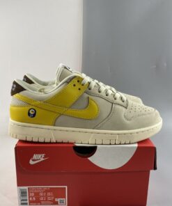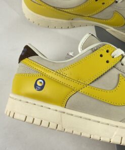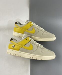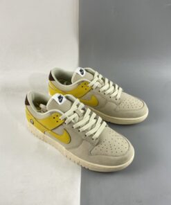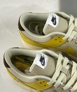 As a complement to the Nike Dunk Low “Avocado” a closer look at the Nike Dunk Low “Banana” is featured as model is already available at retailers overseas. Simply reflective of a banana’s makeup, the low-top boasts a “Coconut Milk/Vivid Sulfur-Cacao Wow” color scheme. Overall, the clean leather upper is reflective of a peeled banana with the yellow Swooshes and overlays symbolic of the banana skin. Finally, furry brown heel tabs mimic a banana’s stem tip, while the produce sticker on the heel rounds out the theme nicely.