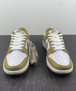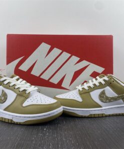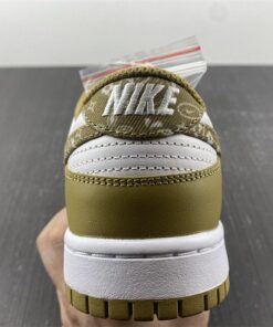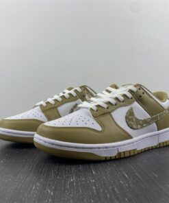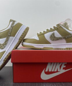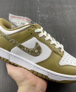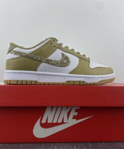 The Nike Dunk Low Barley Paisley is constructed out of a White leather upper that is then contrasted by the Barley hits on the overlays and the branding found on the tongues and insoles. Even more Barley hits land on the lining and rubber outsole. Just like all the other pairs from the Nike Dunk Low Paisley Pack, this pair dons a paisley bandana print on the Swooshes and heel tabs. White laces and midsoles round out the main features of the sneaker.