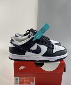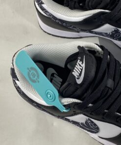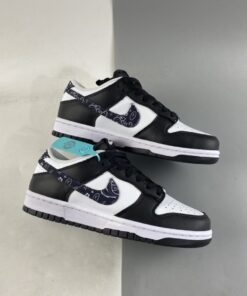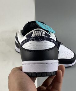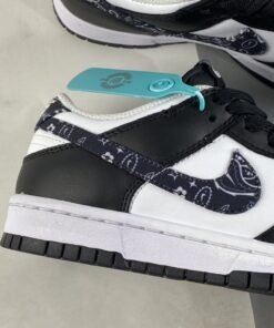Acting as just one of many options in Nike’s forthcoming Dunk Low “Paisley Pack,” this “Black Paisley” iteration sports a monochromatic outfit made of a white leather base and contrasting black leather overlays. The titular print accents both the lateral and medial Swoosh insignias, along with the heels. Rounding out this women’s Nike Dunk Low “Black Paisley” are black nylon tongues, laces, insoles, and outsoles, with white continuing on the branded motifs throughout.