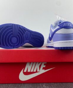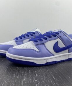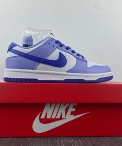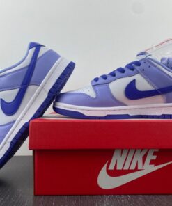 This offering of the Nike Dunk Low features a White leather base with two different shades of Blue used on the overlays, laces, Swooshes, heels, and lining. A White midsole atop a Dark Blue rubber outsole completes the design.