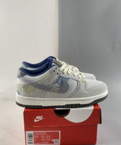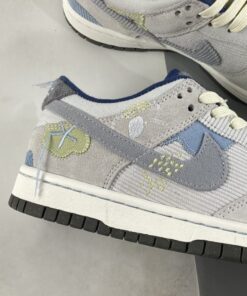 This offering of the Nike Dunk Low comes constructed in a mix of recycled materials such as ribbed corduroy, suede, and denim twill along with embroidered patterns throughout its upper. Loose threads atop a White midsole and speckled Black rubber outsole with “On The Bright Side” printed on the right insole completes the design.
