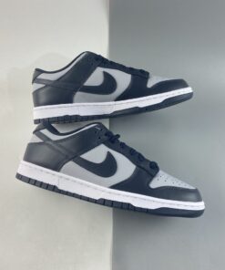 Dressed in a Wolf Grey, Dark Obsidian, and Total Orange color scheme. This offering of the Nike Dunk Low features a Grey leather base with Navy overlays, laces, lining, tongue tags, heels, and rubber outsole. Orange hits are found on the branded insoles completed embroidered heels atop a White midsole.