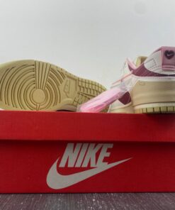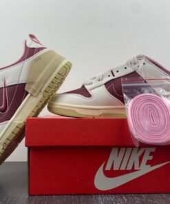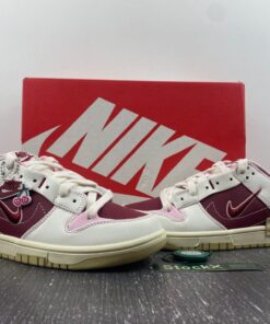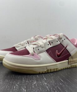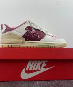 A fashion-forward, women’s-exclusive silhouette, the sneaker recently surfaced in an off white outfit accompanied by “Night Maroon” and “Medium Soft Pink” flair. The experimental design isolates most of its February 14-friendly styling to the underlays, but heart-shaped cherry graphics land on the top of the tongue and sockliner; a special hang tag also delivers the sweet treat. Elsewhere, heart logos land on the middle of the toe box and Achilles’ heel, doubling down on the Nike Dunk‘s Valentine’s Day purpose. Underfoot, the tried-and-proven sole unit reverts to cream and slightly-yellowed finishes while also furthering the Swoosh’s sustainable efforts.