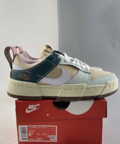 Dressed in a Pearl White, Sea Glass, and Seafoam color scheme. This offering of the Nike Dunk Low Disrupt comes constructed with a mesh base and leather overlays, Swooshes, and pull tabs. It features corked insoles and lace dubraes along with Grind rubber-flecked soles. Finishing details includes signature padded tongues, daisy motif on the lateral heel along with “DUNK” stitched on the heel tabs.