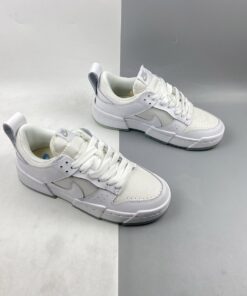 This variation of the Dunk Low comes dressed in a clean Photon Dust and Summit White color combination. This pair features a modern take on the legendary design that uses a platform stance and exaggerated proportions to create a uniquely feminine feel. Extra dimension around the outsole and upper panels add new energy to the shoe’s enduring design lines, while familiar details like a low-cut, padded collar support everyday wearability.