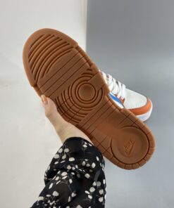 Obvious in its celebration of the aforementioned team, the colorway quickly gets into its bright orange and blue. The latter, which is used in seldom relative to its complement, dresses the branding as well as the lining and heel pull. Atop the overlays, the warm tone comes into play, brightening up the entire palette adjacent to a cream-dominant underlay and matching lace unit.