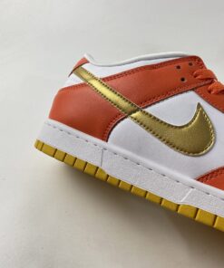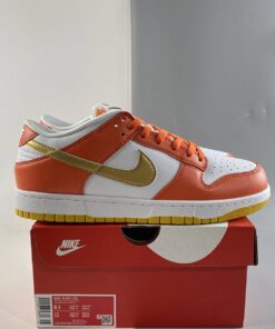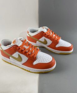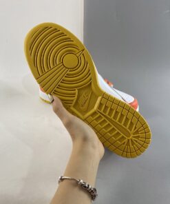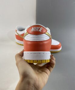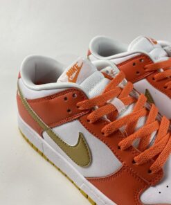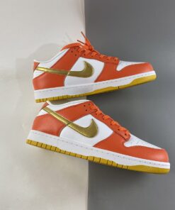 the Swoosh design team didn’t hold back on the louder color schemes. The upper layer mainly sees through to an orange and white presentation, the former color of which flows onto the laces, overlays and Nike Air branding that rests on the tongues while the latter shows up on the smooth leather toe boxes, quarters and collars as well as the interior lining and heel’s “Nike” hits. Swooshes then usher in some subtle contrasting as they are whipped up with a muted gold coat. Moving downwards, the midsoles are bereft of any coloring and come mated atop a “Laser Orange” outsole.