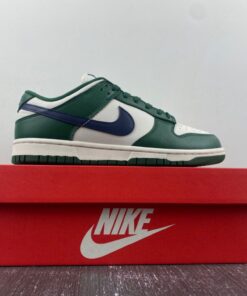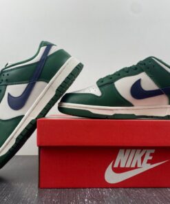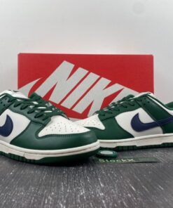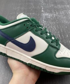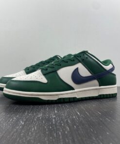 Dressed in a Gorge Green, Midnight Navy, and Phantom color scheme. This offering of the Nike Dunk Low comes constructed in a full leather build with mesh tongues and lining. It features a Phantom base with Green overlays and Navy Blue Swooshes atop a two-tone rubber sole.