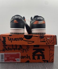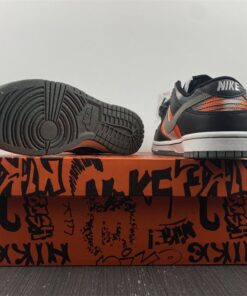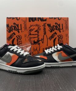 this Dunk Low features Black leather on the overlays, nylon tongues, liner, and laces. Next, 3M reflective fills in the Swoosh logos on the panels while White embroidered branding adorns the heel. Other highlights include a White midsole and a Dark Grey Grind rubber outsole.