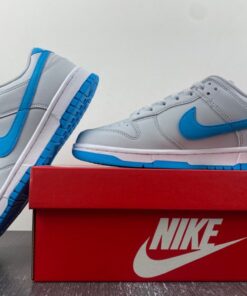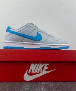 Akin to other popular takes on the made-for-basketball proposition, the newly-surfaced pair indulges in a leather construction across its upper. The majority of the top-half features a grey finish, allowing for blue contrast at the profile swooshes and upper heel area to revel in the spotlight. Elsewhere, the branding on the tongue label and tried-and-proven traction underfoot also take on shades of blue, creating a compelling two-tone Nike Dunk in the process.