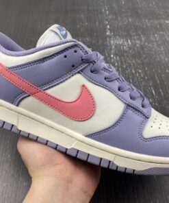 From its implementation of clad suede uppers to a remastered Dunk Low 3.0, the staple silhouette is now undergoing the knife of an early springtime aesthetic. Centering its clad leather base layer and mesh tongue construction in a warm “Sail” hue, the silhouette begins to indulge in its mainstay shade across its smooth leather uppers. Outfitting the latter in a dominant “Indigo Haze” treatment, the violet pastel extends a color-match along the nylon tooling of the sock liner alongside its laces and tongue tab branding. Concluded through its inclusion along the base of its heel tab and tread underfoot, a titular “Coral Chalk” clothes the midfoot Checks and the embroidered text of the heel before its midfoot concludes the pair’s design elements by returning its midsole to the aforementioned cream tone.