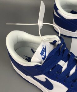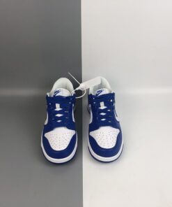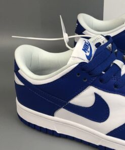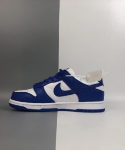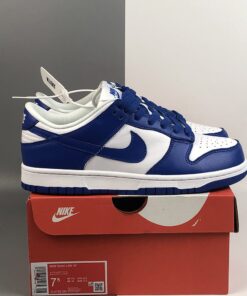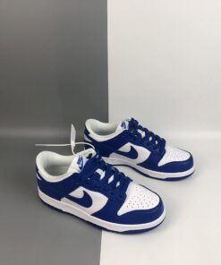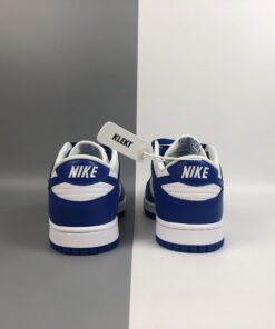 This Wildcats offering of the Nike Dunk Low features a White leather upper with Varsity Royal overlays, laces, tongue branding, Swoosh logos and rubber outsole. White continues on the tongues, inner liner, and midsole to complete the design.