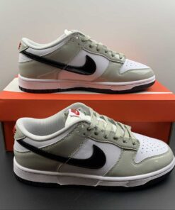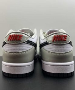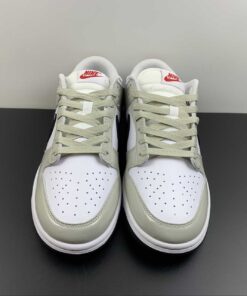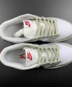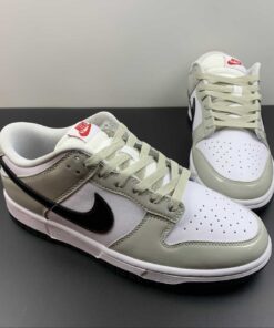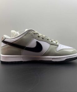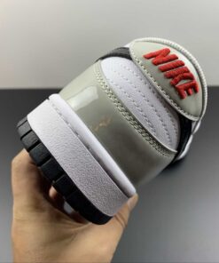 This Nike Dunk Low is draped in an official color scheme of “Light Iron Ore/Black-White-University Red.” Simple yet stylish, the low-top essentially flaunts a smooth leather composition in white which is complemented with shiny patent leather overlays. The shiny element continues on its black Swooshes, while flat grey silky laces, red accents on the branded tongues, followed by a white midsole and black rubber outsole rounds out the profile.