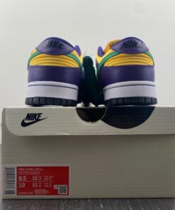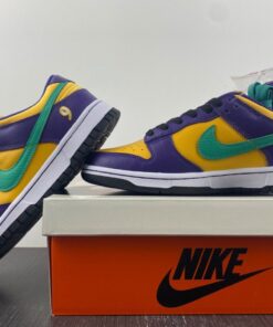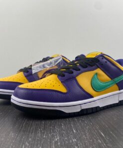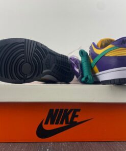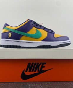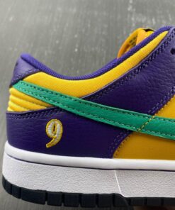 This offering of the Nike Dunk Low comes dressed in the Los Angeles Sparks colors of Purple and Gold pairs with a Teal Swooshes, branded tongue tags and heels. Leslie’s number “9” on the heels atop a White midsole and Purple rubber outsole completes the design.