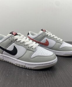 Taking on an official color combination of Pale Ivory, Black, Malachite, and Pale Ivory, this Nike Dunk Low starts off with White smooth leather base which is then contrasted by grey on the overlays and rubber outsole. For more contrast we see the addition of black Swooshes on the side panels, heel tabs, and tongue tags. Standout details on this pair of Dunks are the lottery-inspired branding on the tongues and insoles, a special coin hang tag, and slot machine art on the tissue paper.