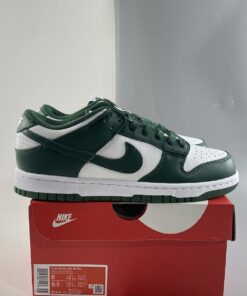 Its “Team Green” offering is dialed to match up with the Michigan State school colors — the very college that NBA players like Magic Johnson and Draymond Green attended. Overlays, Swooshes and treading do most of the talking as they are each coated in the shoe’s nominal hue. Elsewhere on these collegiate kicks, you’ll find nothing but bright white finishes.