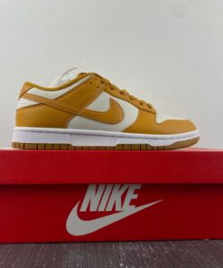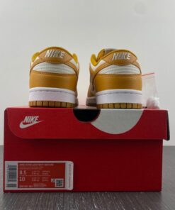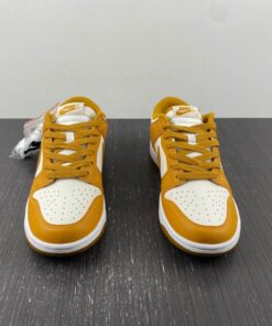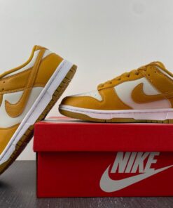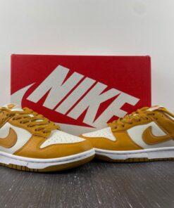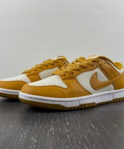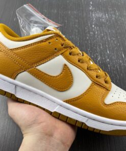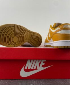 the Dunk Low Next Nature appears in a two-toned colorway featuring white and a light tan hue. Something between a light curry brown and a pecan, this new shade offers a fall-friendly look compared to the light pink and mint hues that recently appeared on the silhouette. The bright green insoles with the pinwheel logo continue to be a standard for Next Nature footwear, while grainy specks appear embedded into the rubber outsole.