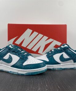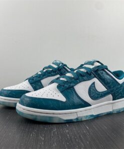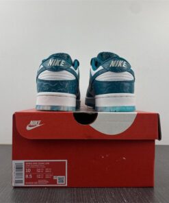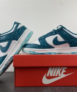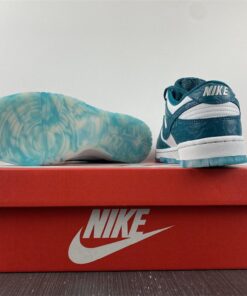 This offering of the Nike Dunk Low features a White leather base with Deep Blue textured overlays to micm the waves of the ocean. Other details includes White mesh tongues, a water-themed tongue tag atop a White midsole and marble-like translucent outsole.