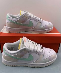 The Nike Dunk Low is introduced in a new “Paisley Print” theme which is suggested to make its debut in the coming weeks. Suited for the warm months, the low-top flaunts a clean white leather upper which is detailed with the highlight paisley print across its overlays in a light pastel color scheme. Additionally, contrasting Mint Green adorns the Swooshes and heels while iridescent tongue tags, a white midsole and sail/light tan rubber outsole solidifies the kid’s-exclusive profile.