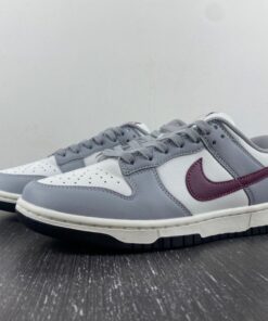 Nike Dunk Low has popped up in a clean color makeup. The shoe is constructed with an all-white base and features grey-toned overlays. The white midsole sits atop a black rubber outsole that rounds out the design of the shoe.. For a pop of color we see the addition of Team Red on the Swooshes as well as the branding on the tongues, insoles, and heels.