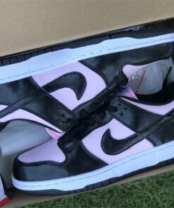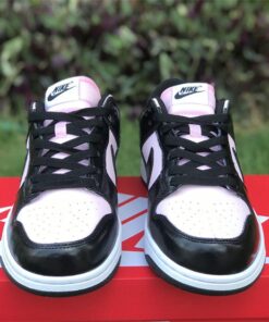 Set to arrive this fall season, this women’s exclusive Dunk Low sports a pink leather base and nylon tongues accented with black, glossy patent leather overlays. The look is finished off with matching black laces, outsoles, and Swoosh insignias, along with pink “Nike” branding embroidered into the heels.