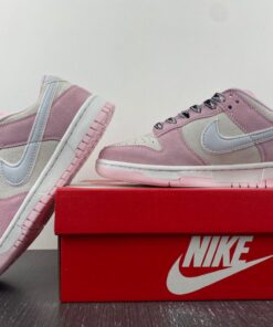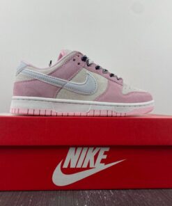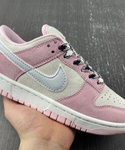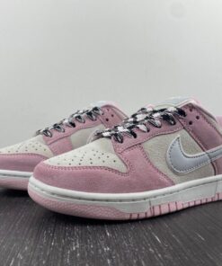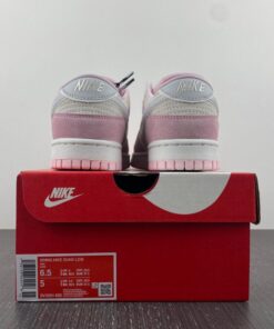 Here you’ll note a soft grey suede upper paired with overlays of muted pink; but it’s not just the material that gets an overhaul, as the release is fitted with double-layered Swooshes, heel overlays, and tongue tags in white and blue hues. The pair is then completed by black and white houndstooth laces, and a simple white and pink sole unit below.