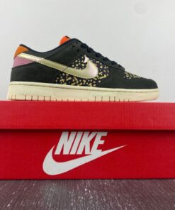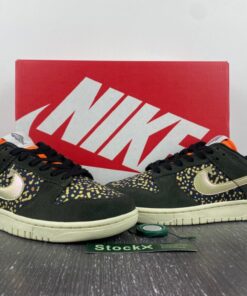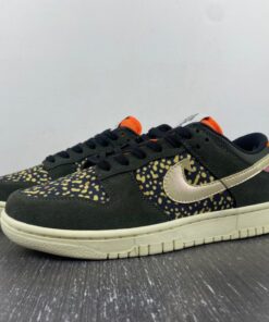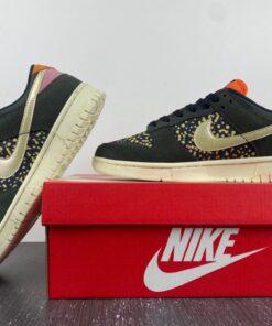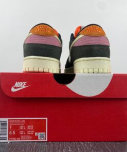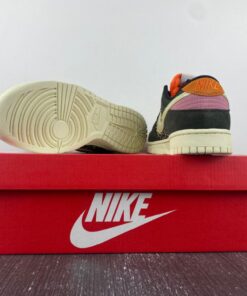 this Nike Dunk Low features a mixture of leather, mesh, suede, and canvas while using an array of colors. The Swoosh itself has been given a scaley makeover, glistening as it catches the light, much like its less rubber-based family member. The Swoosh also has an added hook tooth, and fish logos land on the tongue labels. Resembling that of a fishhook is the iconic logo, slightly tweaked in order to fit the motif, a subtle but appreciative change. The “Rainbow Trout” print is featured on the sidewall and toe box, its loud appearance dampened by the dark green suede that surrounds it. The mesh on the tongue is draped in an orange, the Nike label depicting that of trout with the words inside reading “Nike Beaverton 1972”. The final dash of colour can be found on the back via an orange heel tab and pink underlay, two tones commonly associated with the multi-coloured creature.
