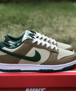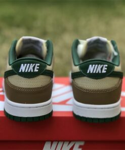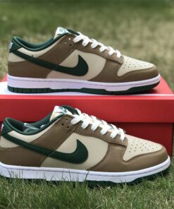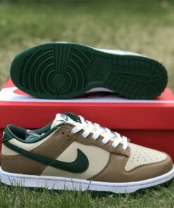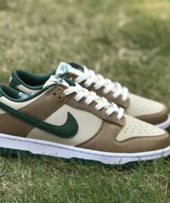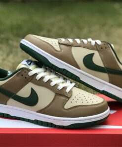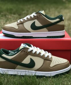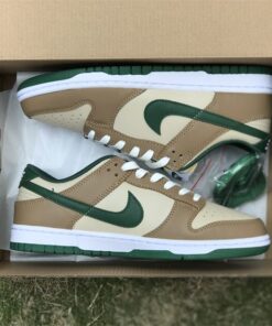 “Forest Green” accents enhance the release, giving the laidback offering a pop of color. The previous adorns the profile Nike Swooshes, extending into the branded backtabs. Beige nylon tongues see white badges that boast Nike lettering, while white laces, midsoles, and green rubber bottoms bring the sneaker to a close.