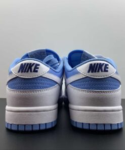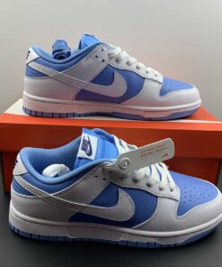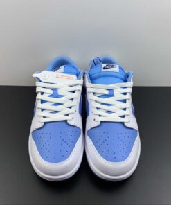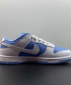 This Nike Dunk Low gets a full smooth leather construction throughout the upper as the base is hit with the highlight University Blue and the overlays are done in a contrasting White. For some more contrast we see the addition of Royal Blue branding on the tongues, heels, and insoles. A white rubber midsole and University Blue rubber outsoles wrap up the design on this Nike Dunk Low.