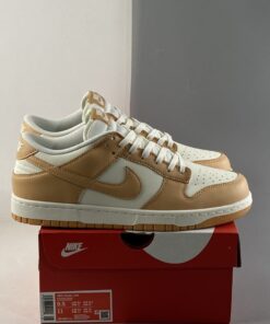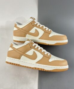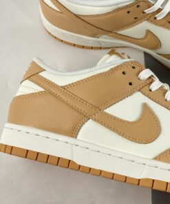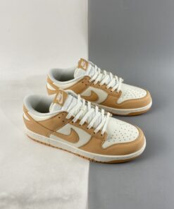 the Dunk is delivered in a two-tone construct, pairing staple white leather uppers with overlays of the titular hue. The fall-friendly hues continue at the tongue tag and insole branding and are joined by a complimentary gum rubber outsole to complete the design.