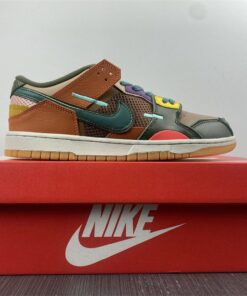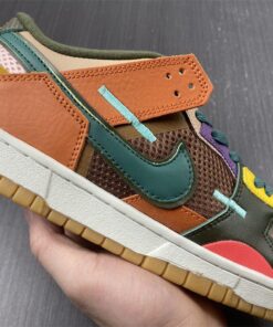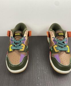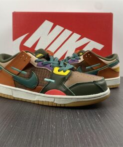 Dressed in an Archeo Brown, Bicoastal, and Sport Spice color scheme. This Nike Dunk Low comes constructed in a mix of leather and mesh materials. While majority of the shoe features a Brown hue, it comes highlighted with an array of Green, Purple, Yellow, and Pink patch overlays. A White midsole atop a Gum rubber outsole completes the design.