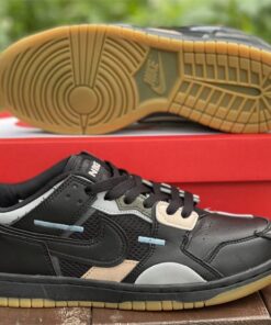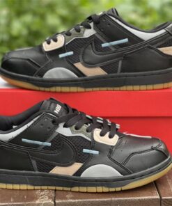 This Nike Dunk Low Scrap dons a Cool Grey, Black, Anthracite, and Gum color scheme. To put it in simpler terms, the sneaker dons a predominantly Black base placed atop a Black midsole and gum outsole. The “Scrap” rendition of the Dunk Low is uniquely designed as the upper is constructed in a mix of mesh, leather, and suede materials detailed with patchwork and exposed stitching.