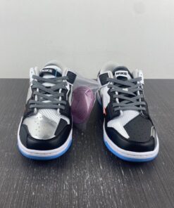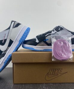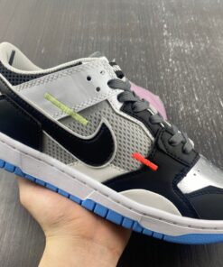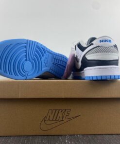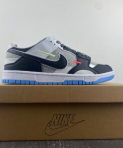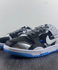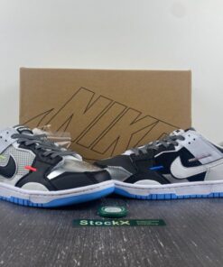 Reminiscent of an early VaporMax EVO, which combines a handful of past Air Max silhouettes, the newly-surfaced proposition couples a mix of up-cycled materials with a two-tone makeover and disparate contrasting accents. Given their “scrap” origins, the synthetic leather and mesh panels throughout the pair’s upper indulge in non-standard, seemingly random cuts and placements. Shimmering silver components land on the Nike Dunk‘s forefoot, while conspicuous stitching along the profiles and on the tongue introduce red, blue, pink and green flair into the mix. Underfoot, sole units deliver the only sense of symmetry found on the low-top pair, indulging in a “colorless” midsole and vibrant blue outsole.