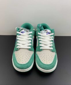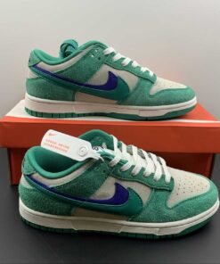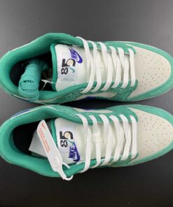 Channeling the recently-revealed High option in “Stadium Green”, this Low leans on similar hues, though it ditches the accompanying whites and black for bones and blues on the upper and Swoosh underlays respectively. Tongues, laces, and midsoles follow in boney hues, while blue tongue thread and green rubber outsoles round out the design.