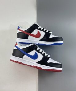 As you can see, this Nike Dunk Low features colors that are taken from the Korean flag, which also lands on the left tongue. Next, White leather lands on the base while Black adorns the overlays. We then have mismatch Red and Blue Swoosh logos along with a translucent outsole. Lastly, Korean characters land on the heel, and White covers the midsole to finish the look.