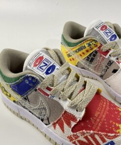 Also, we have Nike Sportswear branding on the tongue that mimics a nutrition facts label. One of the most exciting elements from this pair is the assortment of materials used. Not only that, we have various prints and patterns, paired with a translucent Swoosh and tongue overlay. In addition, we have ‘Thank You For Caring’ on the left shoe. Lastly, Red insoles and Cream outsoles finish the look.